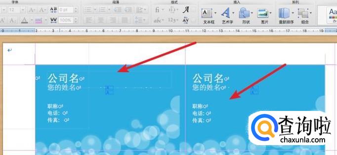 这样,我们就得到一份名片的文档了,在这里输入自己对应的信息,打印出来就可以了。