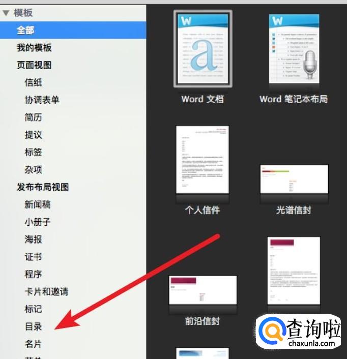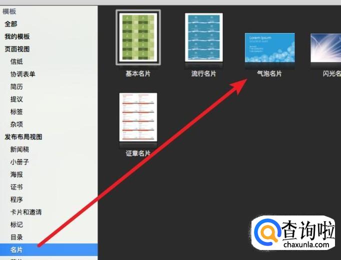 在模板窗口上,先点击左边目录的‘名片’。