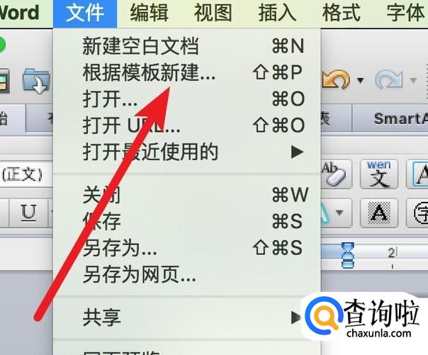 打开word,点击菜单栏上的‘文件’--‘根据模板新建’。
