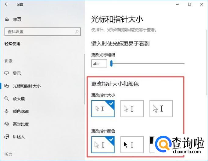 弹出的界面,我们点击光标和指针大小;