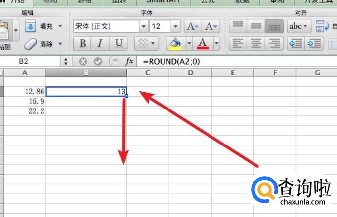 要将其进行四舍五入,我们可以使用Round函数,在B2单元格里输入公式:=ROUND(A2;0)