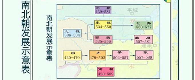 北朝承继五胡十六国。北魏皇室多为鲜卑族。而鲜卑皇室也逐渐受到汉文化的熏陶,其中以北魏孝文帝的汉化运动最盛。由于北部的柔然牵制北魏 ,使得北魏难以用全力攻入南朝,直到较亲北魏的突厥取代柔然后才较安定。北魏后期政治逐渐败坏,六镇民变后国力大衰。