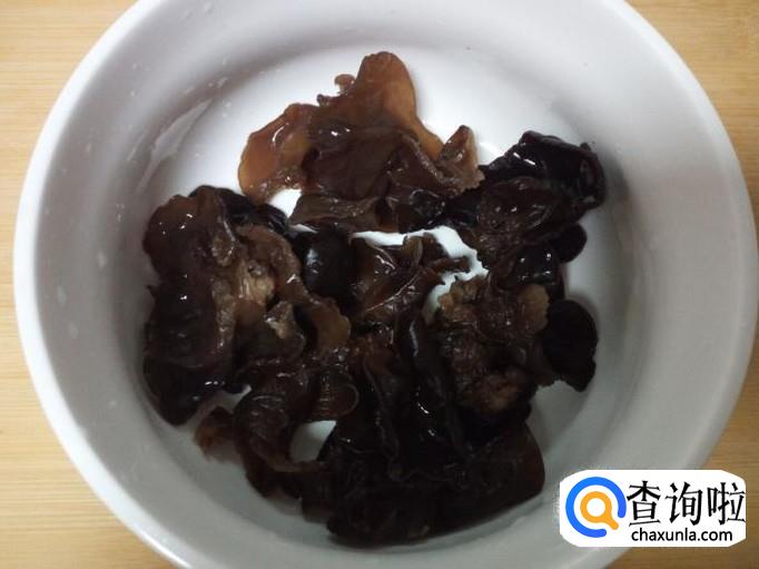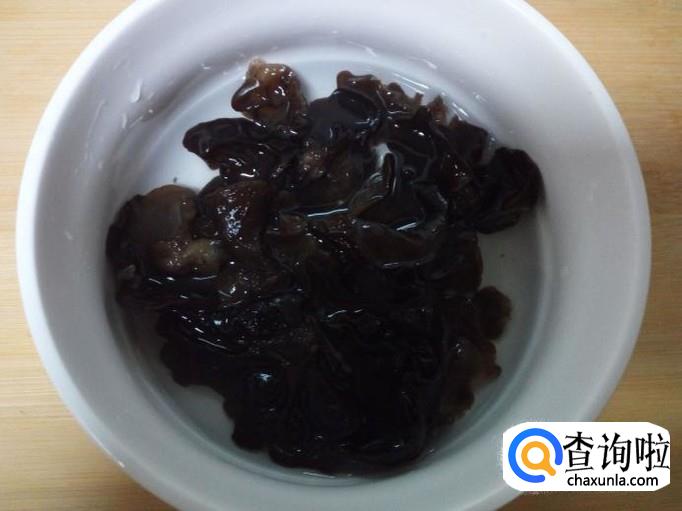 用温水快速泡发木耳,把泡发好的木耳收拾清洗干净,攥干水分。