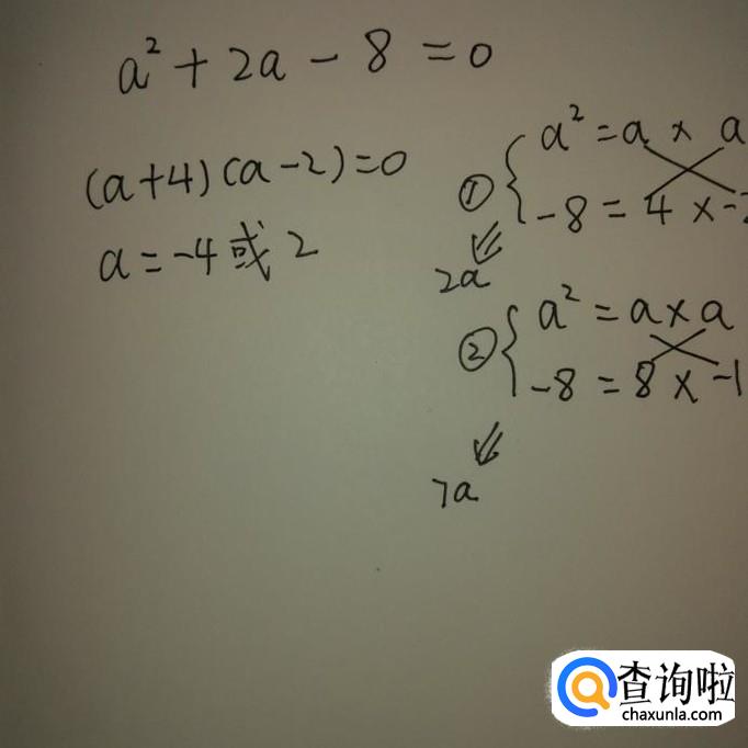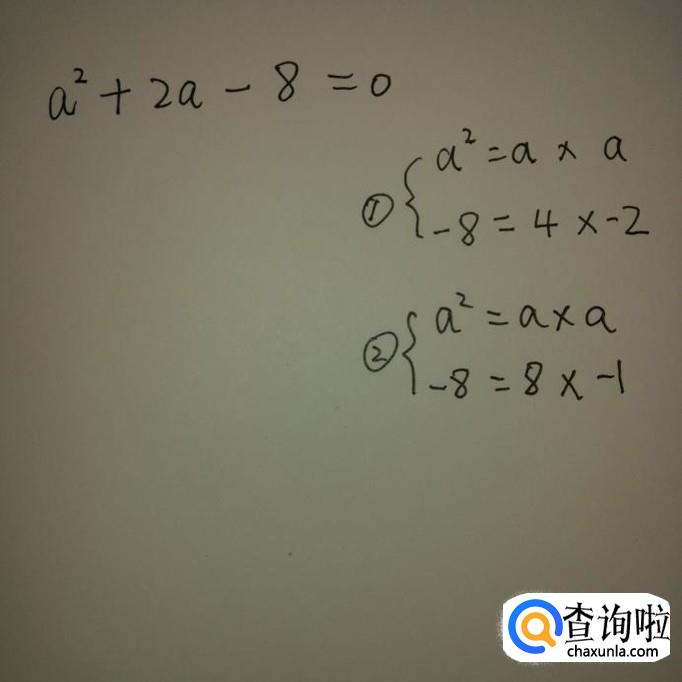 分解二次项,只有一种结果,两个a相乘,分解常数项,有两种结果,4乘以2,8乘以1