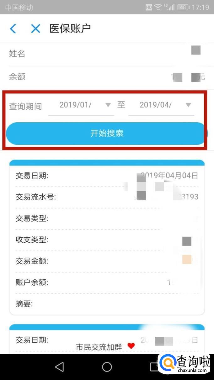 进入”医保账户“后,可以查询到医保卡的余额,还可以输入时间段进行查询。