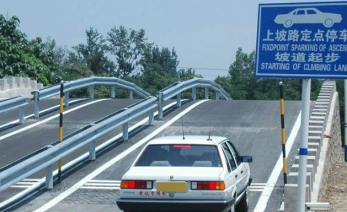 4、听到语音提示之后30秒内,需要完成坡道起步。坡道起步时,打左转向灯,缓慢抬起离合器(不能抬太快),当车头有上翘、车身有抖动感觉时,左脚保持离合器不动,右脚松开刹车,车辆平稳起步向坡道上行驶,关闭转向灯,最后完全上坡顺利下坡,驶出坡道定点停车和起步考试区。