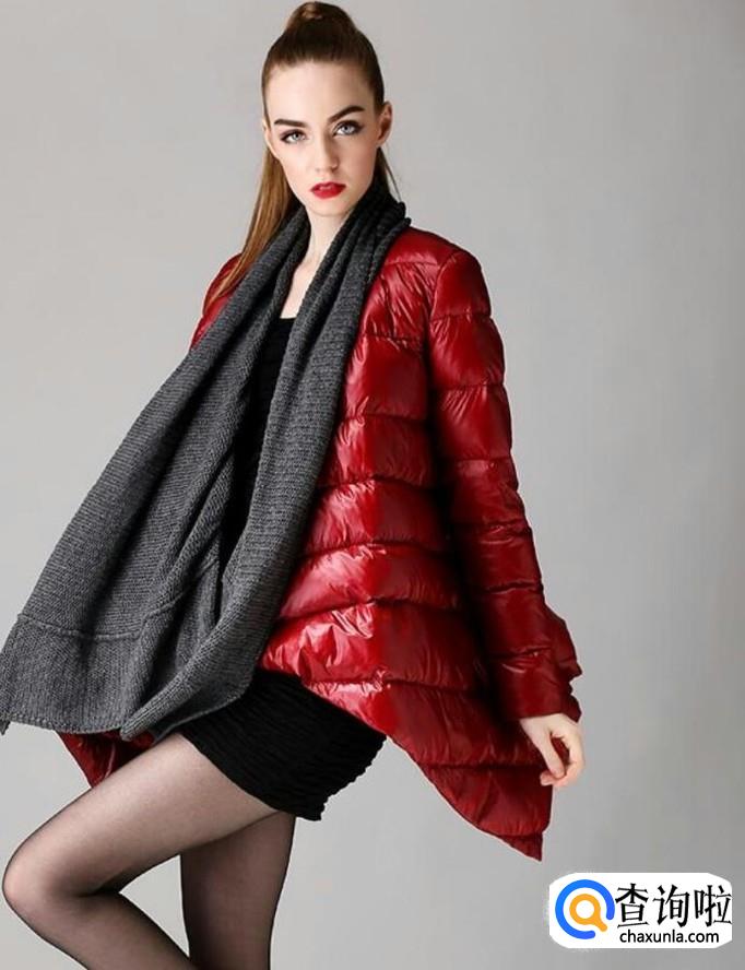 搭配黑色毛线围巾。红色的羽绒服搭配黑色的打围巾大气端庄。