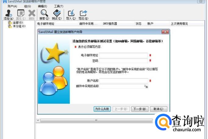 安装完成后,打开软件,我们看到上面的提示说,让我们新建一个邮箱账户(这个邮箱账户是用来发送邮件使用的)。