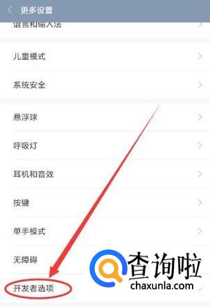 返回设置界面,找到全部设置,点击并进入,找到开发者选项然后进入,如图所示。