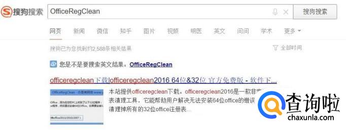 这里,我们使用搜索引擎搜索“OfficeRegClean”关键字,在搜索结果页面中,点击下载该软件。