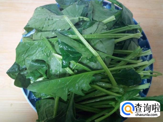 菠菜用开水焯一下,水开后入锅10秒钟捞出,迅速用冷水过凉,沥干水分。