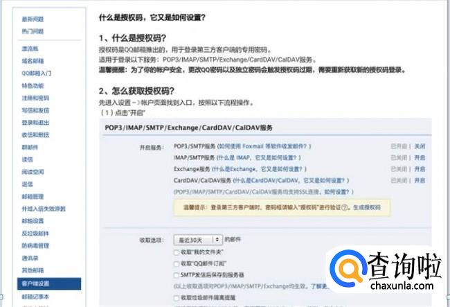 当自定义的“授权码”设置成功之后,将POP3服务与IMAP服务开启。