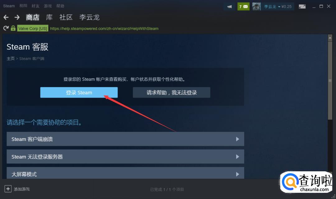 进入到客服界面之后服需要我们再登录一次STEAM。