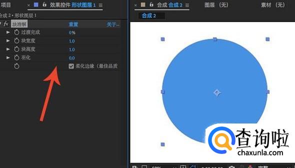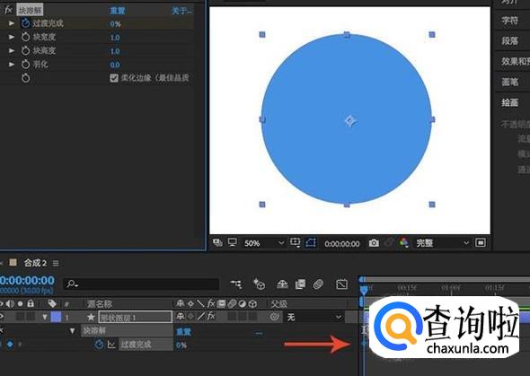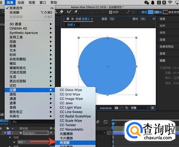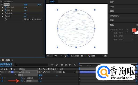 添加完成之后点击形状图层,点击“效果-过渡-块溶解”
