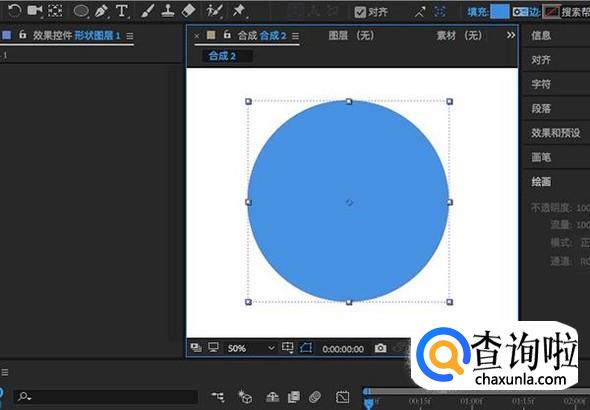 创建合成之后,在工具栏中选择“形状工具”来添加一个形状,这个我们添加一个椭圆。