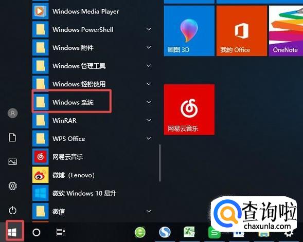 首先,我们打开我们的电脑,然后我们点击电脑桌面左下角的微软按钮,弹出的界面,我们下滑中间的界面,然后我们找到windows系统,之后我们点击打开它;