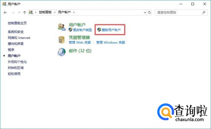 弹出的界面,我们点击删除用户账户就可以删除了。