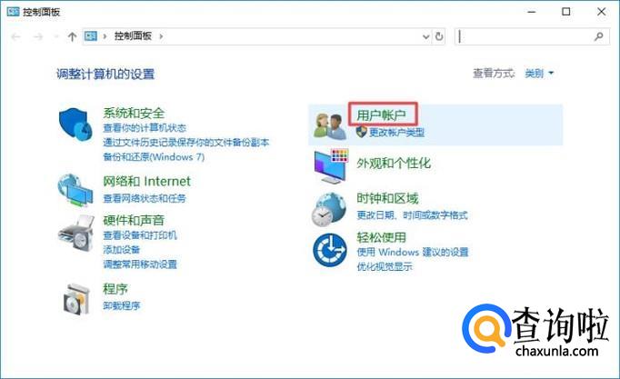 进入控制面板之后,我们点击用户账户;