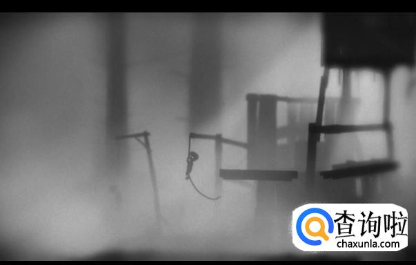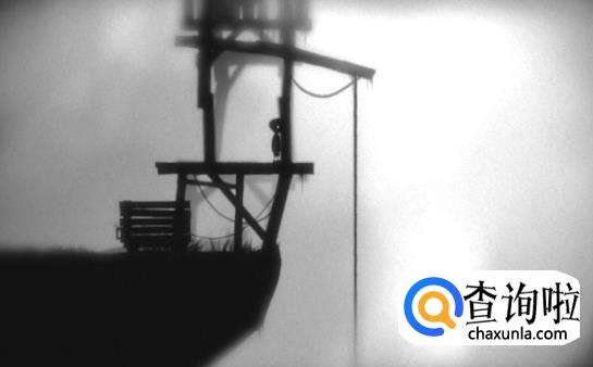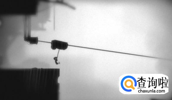 回到电梯的位置把电梯向右边拉,在按开关,让电梯的木头和那个跷板卡主,即可把木箱推倒绳子处,准备上绳子前先下去扳动机关,然后快速的回到木箱上抓住还没上去的绳子,然后被吊上去。