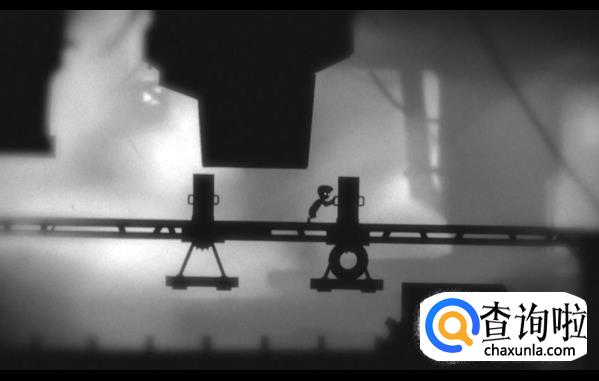 继续走来到一处向下压的机关,看准时机,小心被压扁,顺着路一直向右走,来到齿轮边借助箱子和头顶上的生物,把头上的白色东西去掉。