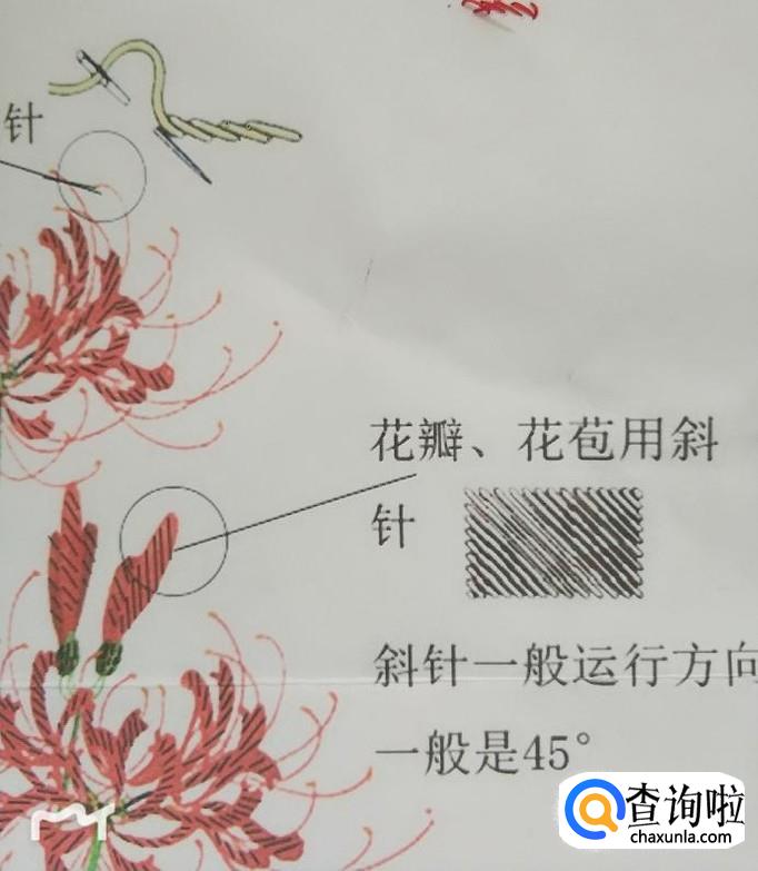 看图解,根据图解方向,绣出图案。图片上绘出了绣线的走向,依样画葫芦就可以了,不用想得太复杂。