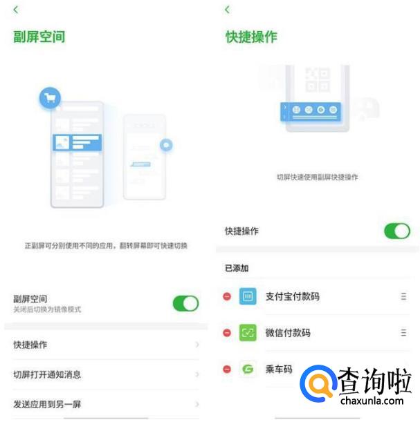 既然主打的是副屏,努比亚Z20势必会加入一些副屏玩法,除了一些装X功能(熄屏显示、屏幕情景灯效),其实还有一些十分实用的小功能,副屏空间就是笔者最喜欢的。在常规状态下,副屏是一个付款工具,当你双手提着很多商品不太方便点击屏幕时,就可以直接将手机翻转过来,选择你所需要的付款码APP,就能直接进行付账了。