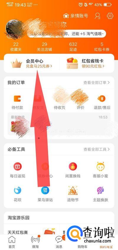 在“我的淘宝”中找到“会员中心”并点击进入会员俱乐部。