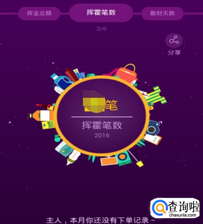 “挥霍笔数”--主人,本月你还没有下单记录~,看看你到底买了多少东西吧。