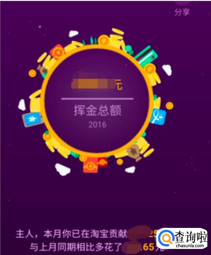 “挥金总额”--主人,本月你还没有花费哦,与上月同期相比少花了--元。