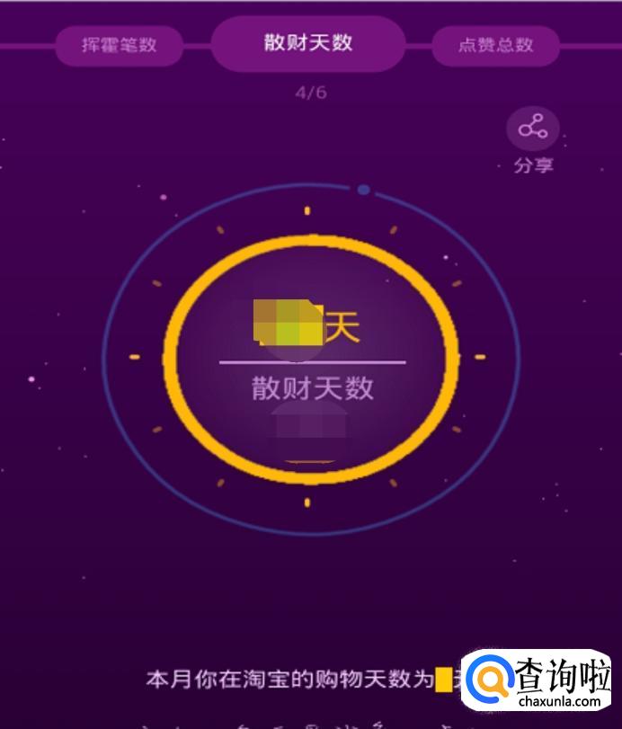 “散财天数”--主人,本月你在淘宝的购物天数为--天。登录天数查看。