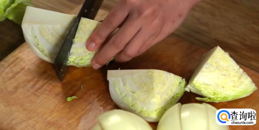 之后把芹菜切段,胡萝卜切条,洋葱切半月形,土豆去皮切块,卷心菜切大块。