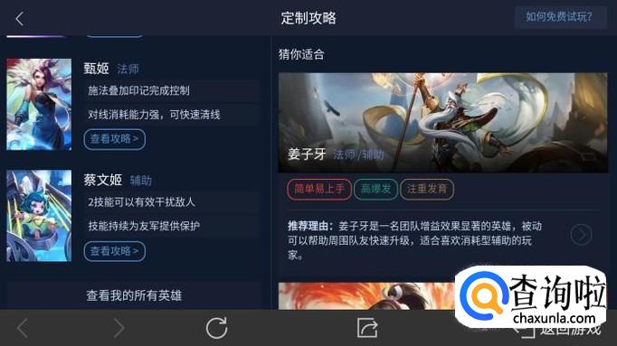 点击后,弹出新页面,然后点击页面中的定制攻略