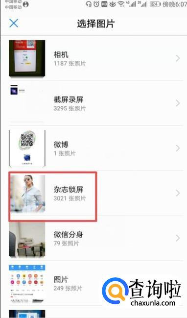 弹出的界面,我们点击杂志锁屏;