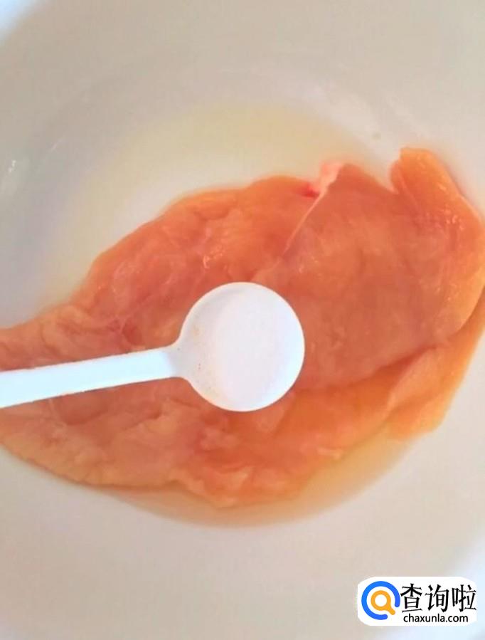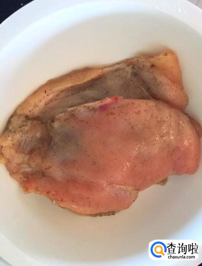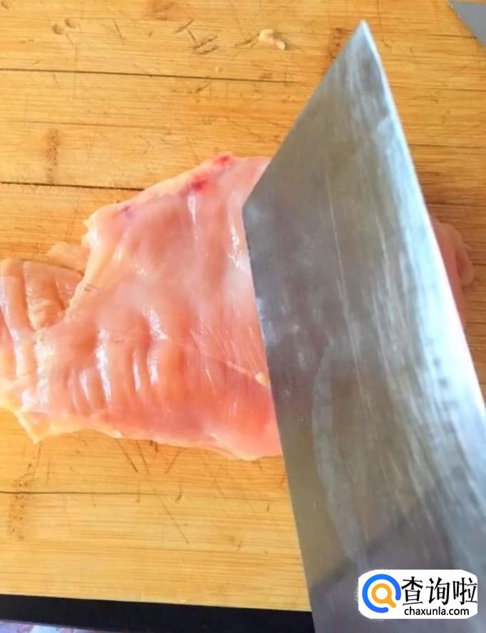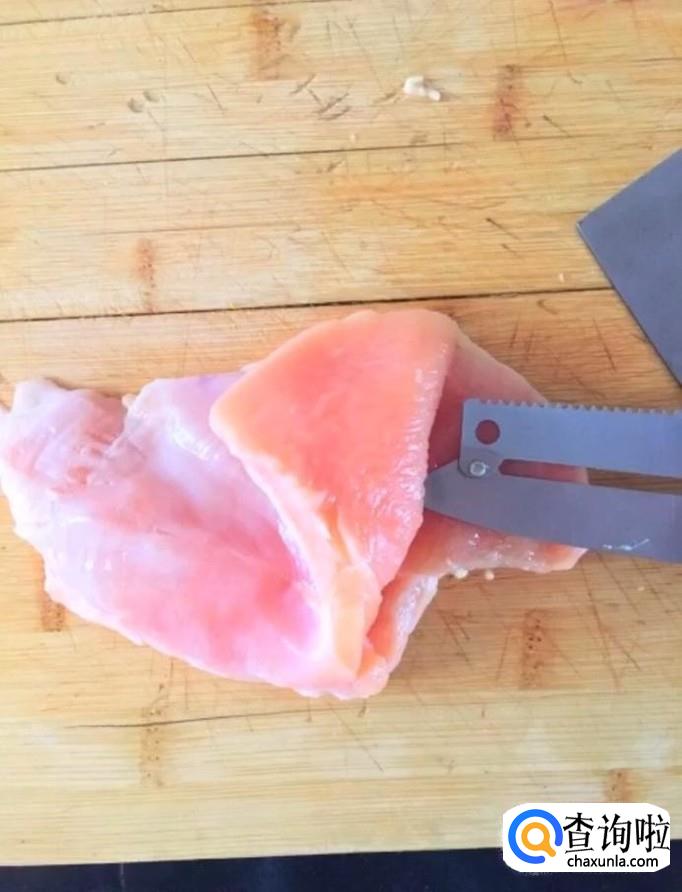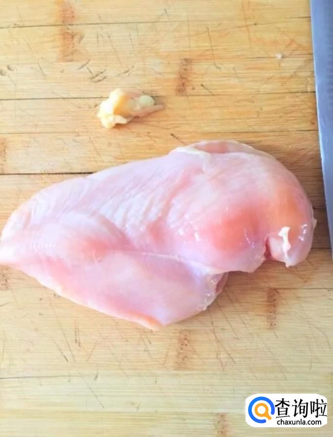 首先我们将鸡胸肉清洗干净,把上面多余的油脂切除