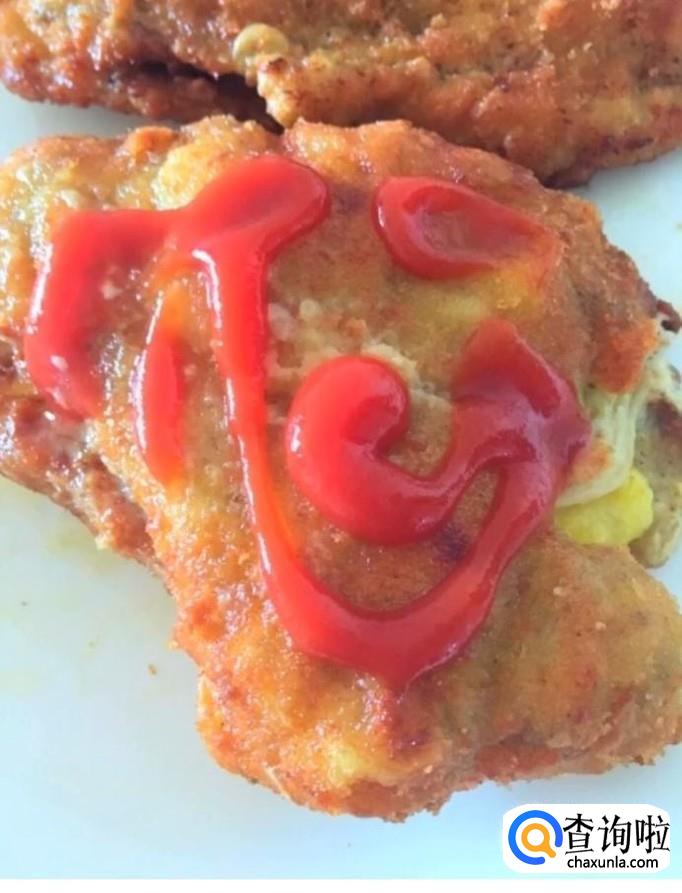 最后美味的爆浆鸡排就制作完成啦!撒上一点番茄酱更加美味哦!
