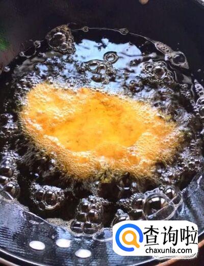 接着我们起锅烧油,油温五成热下入鸡胸肉炸,小火慢炸,炸至金黄酥脆捞出控油