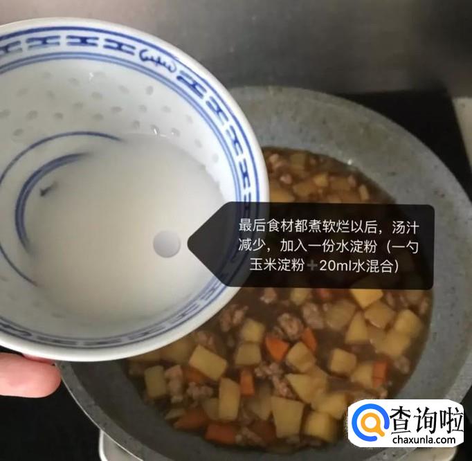 然后往锅中加入适量的水淀粉开大火收汁,如图所示。