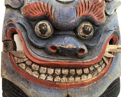吞口,是民间艺坛面具的变异,起源于图腾崇拜和原始巫教,是古代图腾文化与巫文化相结合,经历漫长的岁月后嬗变而成的一种民间文化的产物。是云、贵、川、湘等省一些少数民族地区挂在门楣上,用于驱邪的木雕,大多以兽头为主,也有人兽结合的,还有挂葫芦或木瓢的。