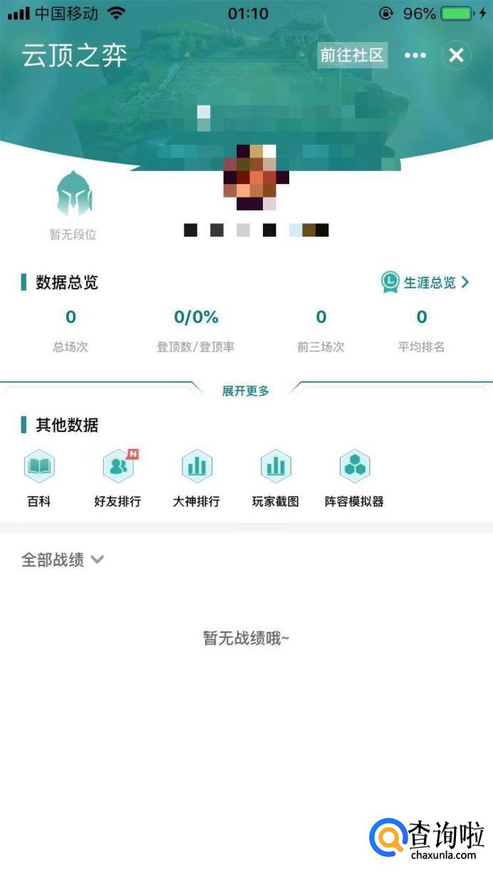 在战绩中可以查看到你所有的游戏记录(包括匹配排位等)然后找到并点击的云顶战绩,进入云顶战绩页面。