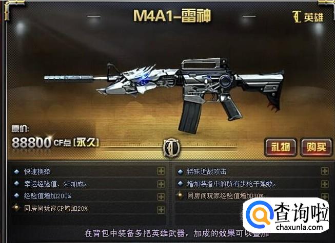 雷神相对于普通的M4提升了换弹速度,这是最为关键的一个属性,会玩的都知道换弹快慢意味着什么。还有一个近战应急攻击功能,右键可以用枪托近战攻击,这是个很实用的功能,在“转角遇到爱”的情况下很有用。