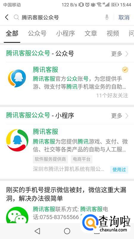 搜索公众号“腾讯客服”,点击添加关注。