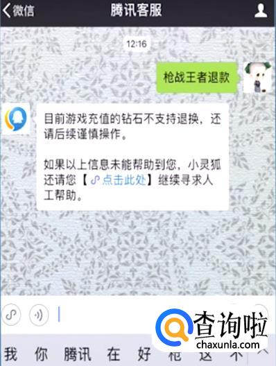 发送给它,它会回复你无法退款,因为他是人工客服,但它给你一个链接,点击进入填写订单申诉退款。