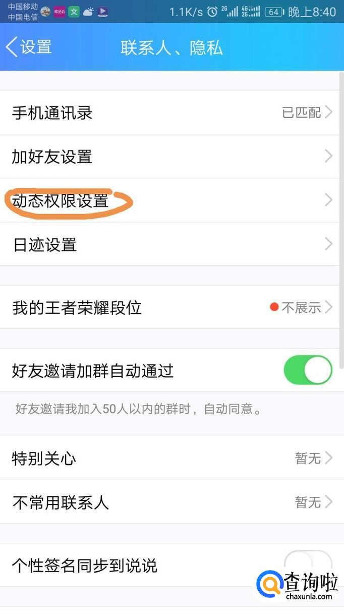在出现的新页面中选择动态权限设置,并点击确认