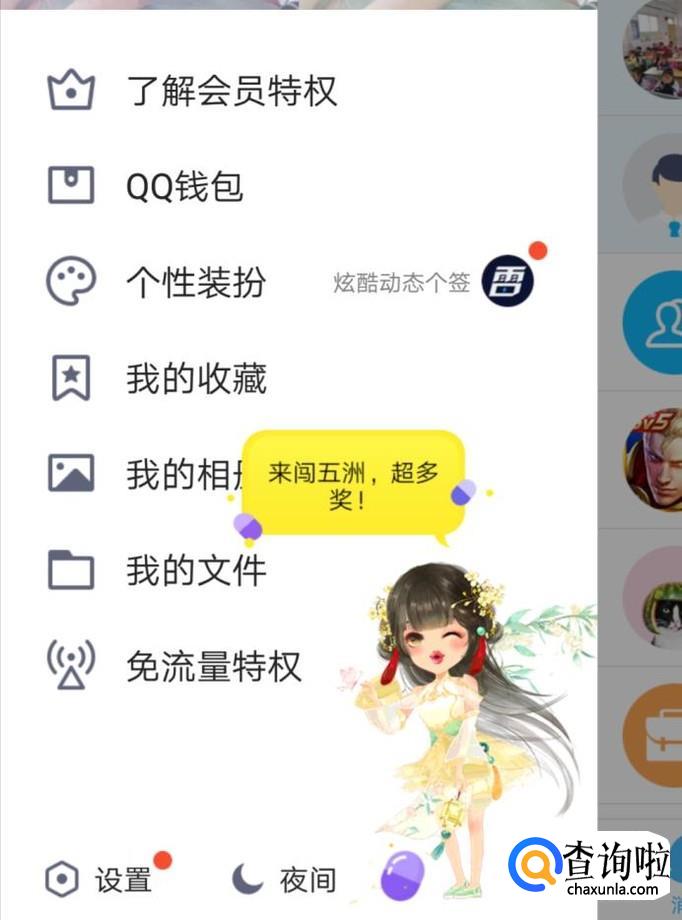 进入QQ后,点击屏幕向右划动,便会出现如下图的页面,点击左下角的设置选项