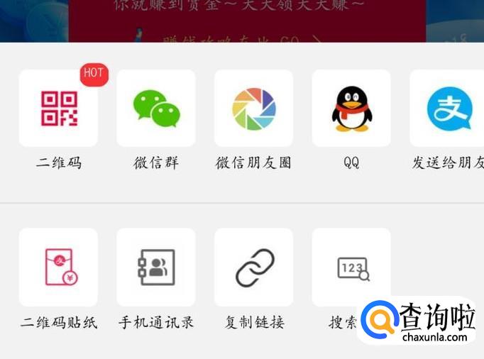 点击立即赚赏金,再点击你想把这条信息发到哪个应用上的图标,比如QQ。