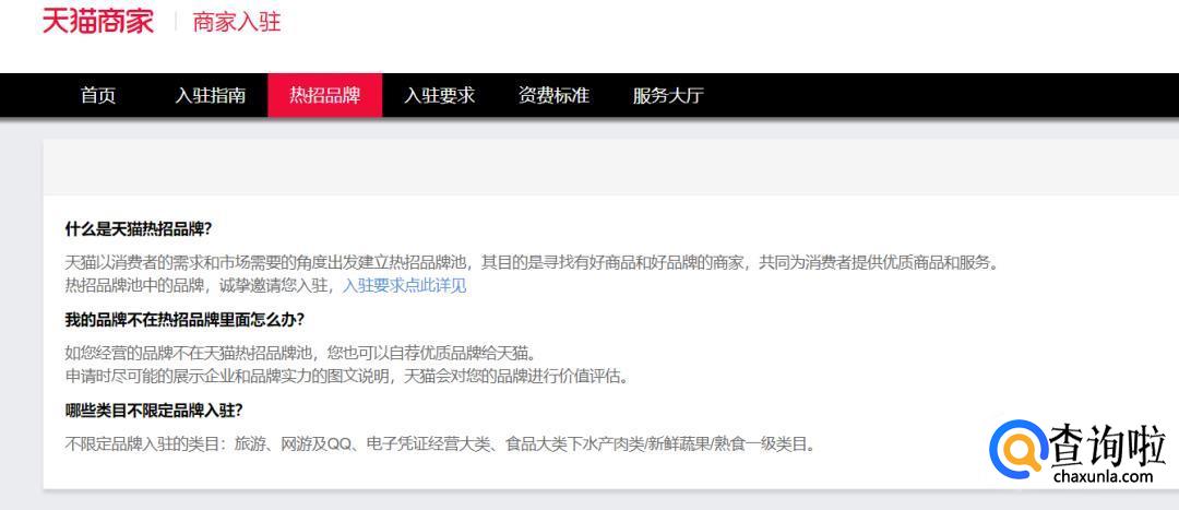 在【招商首页】点击【热招品牌】可以看到自己需要入驻的品牌是否属于热招,如果不是,那么天猫的审核机制会非常严格,所以一定要做好万全的准备和申请被退回的预期。