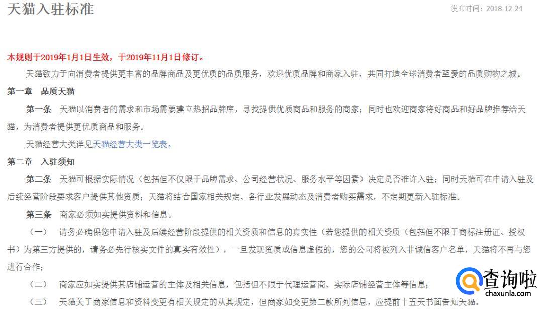 入驻天猫,没有那么简单,天猫有权不同意你的申请;天猫还可以找茬,注册信息资料一定要真实,否则会进天猫黑名单;个体工商户和海外企业不能入驻(不包括国外企业在国内设立公司的);纯图形类商标和未注册成功的商标不能入驻。