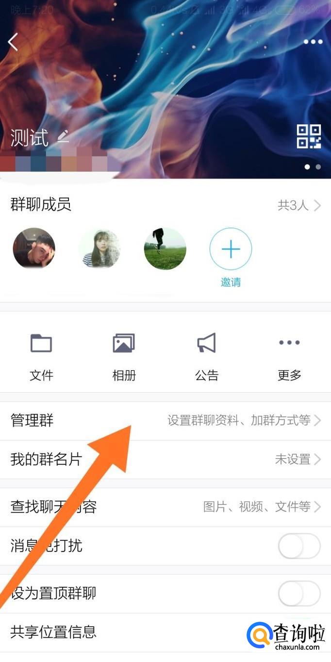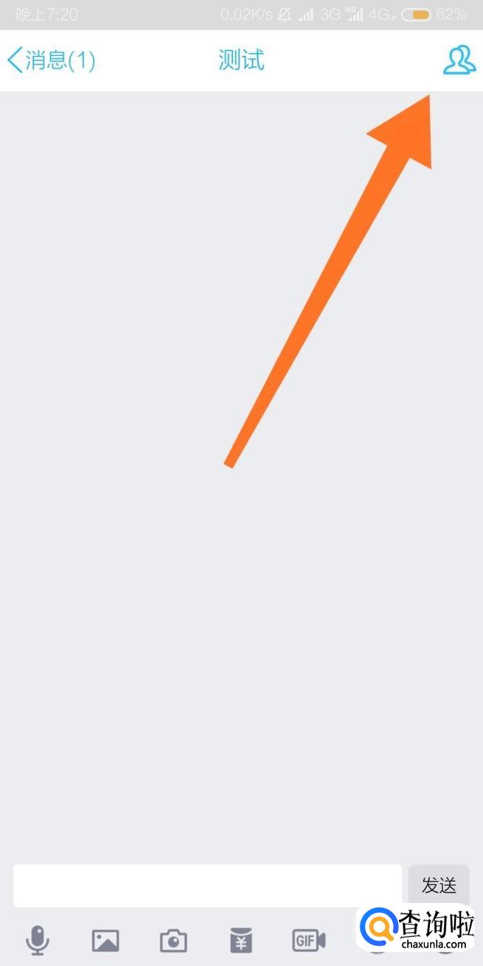 首先进入QQ群聊天界面,然后点击右上角的群头像。