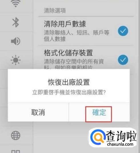 恢复出厂设置后,手机部分数据会丢失,请谨慎使用!
