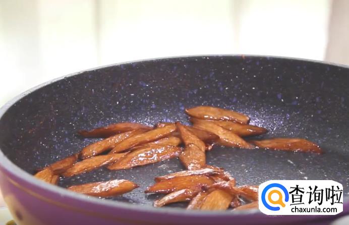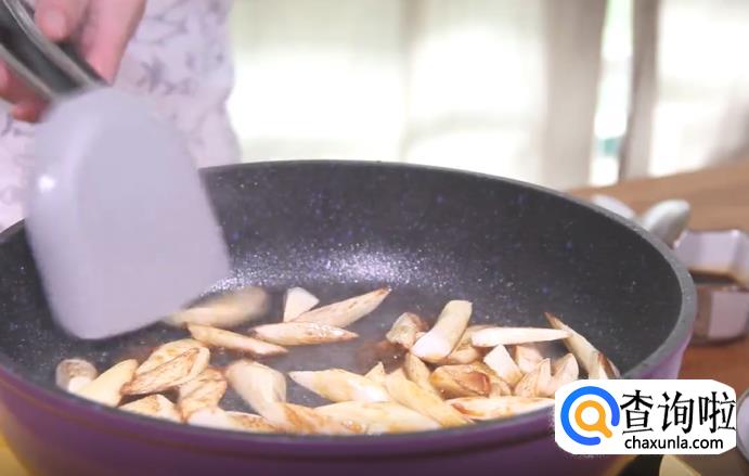 热锅起油,将切好的茭白倒入锅中,不断翻炒,直至表面微微变黄的时候,加入生抽,继续翻炒上色。